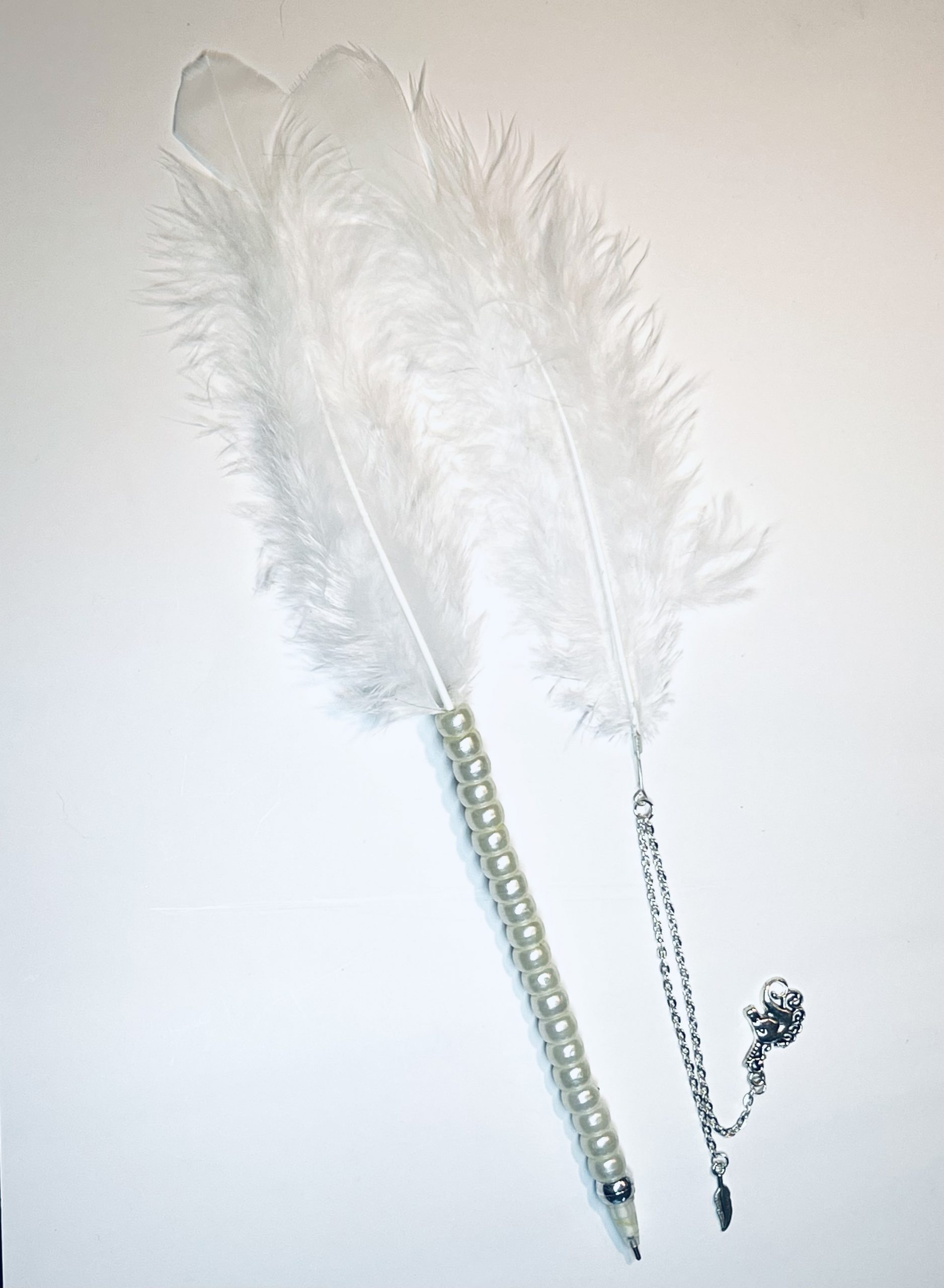 Pure and elegant — a white feather pen and matching chime bookmark. Minimal, magical, one of one.